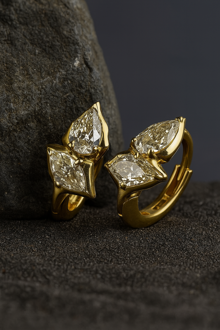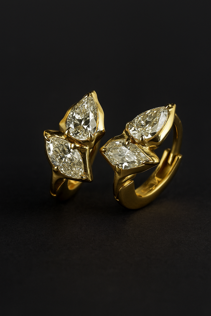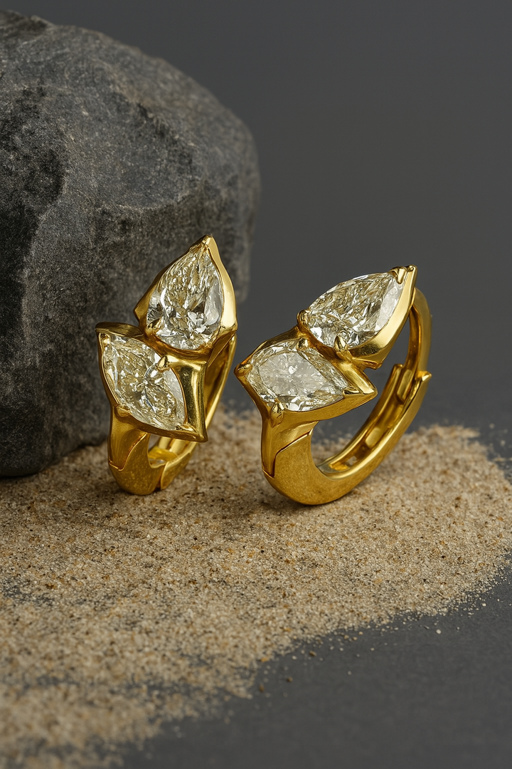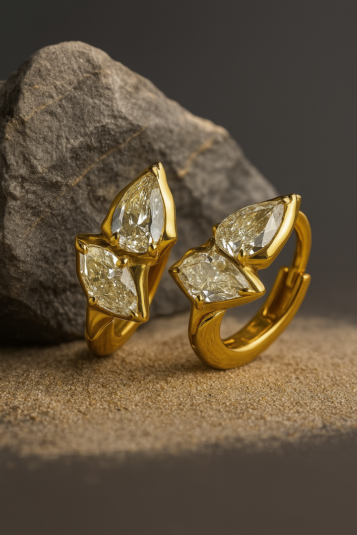 Bring a touch of nature’s elegance to your look with the Aurora Leaf Stud Earrings. Crafted in a graceful three-leaf design, each marquise-cut stone sparkles brilliantly against the warm gold-plated frame. The organic yet refined shape makes them perfect for both everyday wear and special occasions.